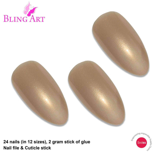 False Nails by Bling Art Gold Glitter Almond Stiletto 24 Fake Long