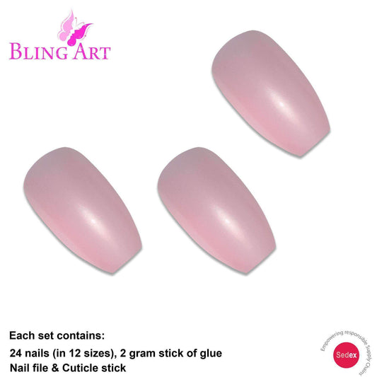 False Nails by Bling Art Pink Glitter Ballerina Coffin 24 Fake Long