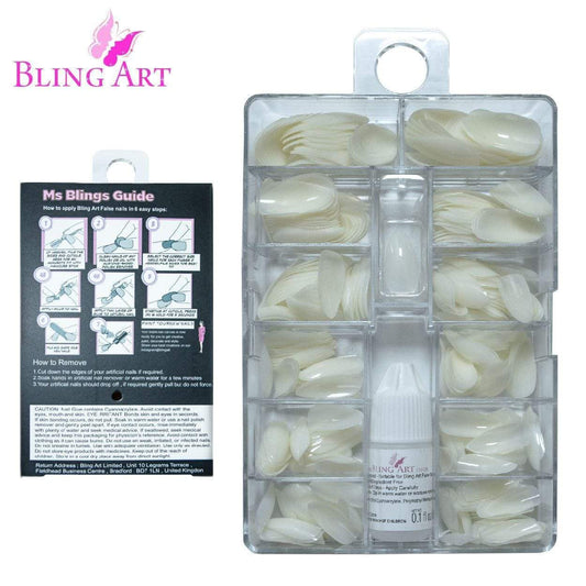 False Nails by Bling Art 360 Stiletto Almond Long Natural Acrylic Fake
