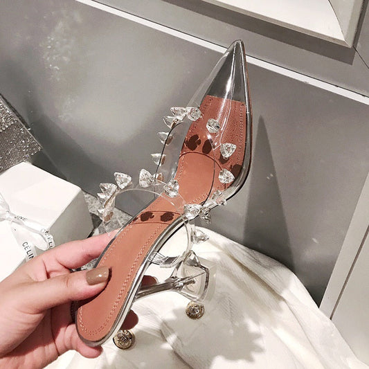 Star style Rivet Transparent PVC Cup Heeled Women Sandals