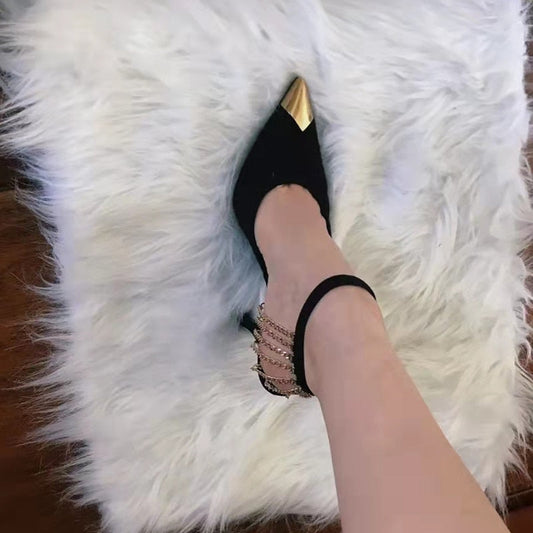 Metal Chains Women Pumps Elegant Pointed toe Ankle Strap High heels
