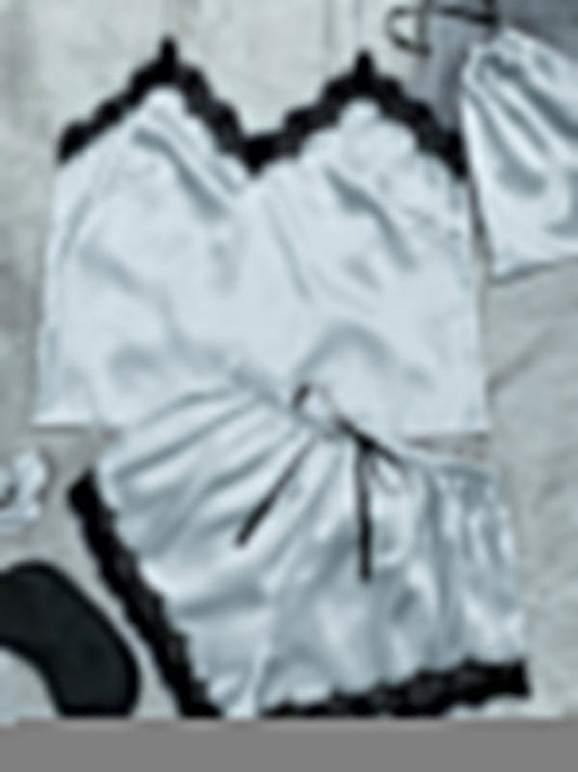 Women's Contrasting Color Lace Camisole + Shorts Pajamas Two-Piece Set