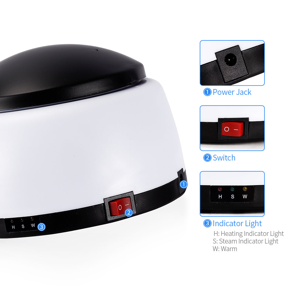 1.100% Brand new and high quality 2.Ergonomic design, simple, comfortable and convenient 3.Safe and harmless. This steam-off nail polish remover is portable and will not harm your skin 4.One-button operation, three-color guide light prompt, automatical and do not bother.