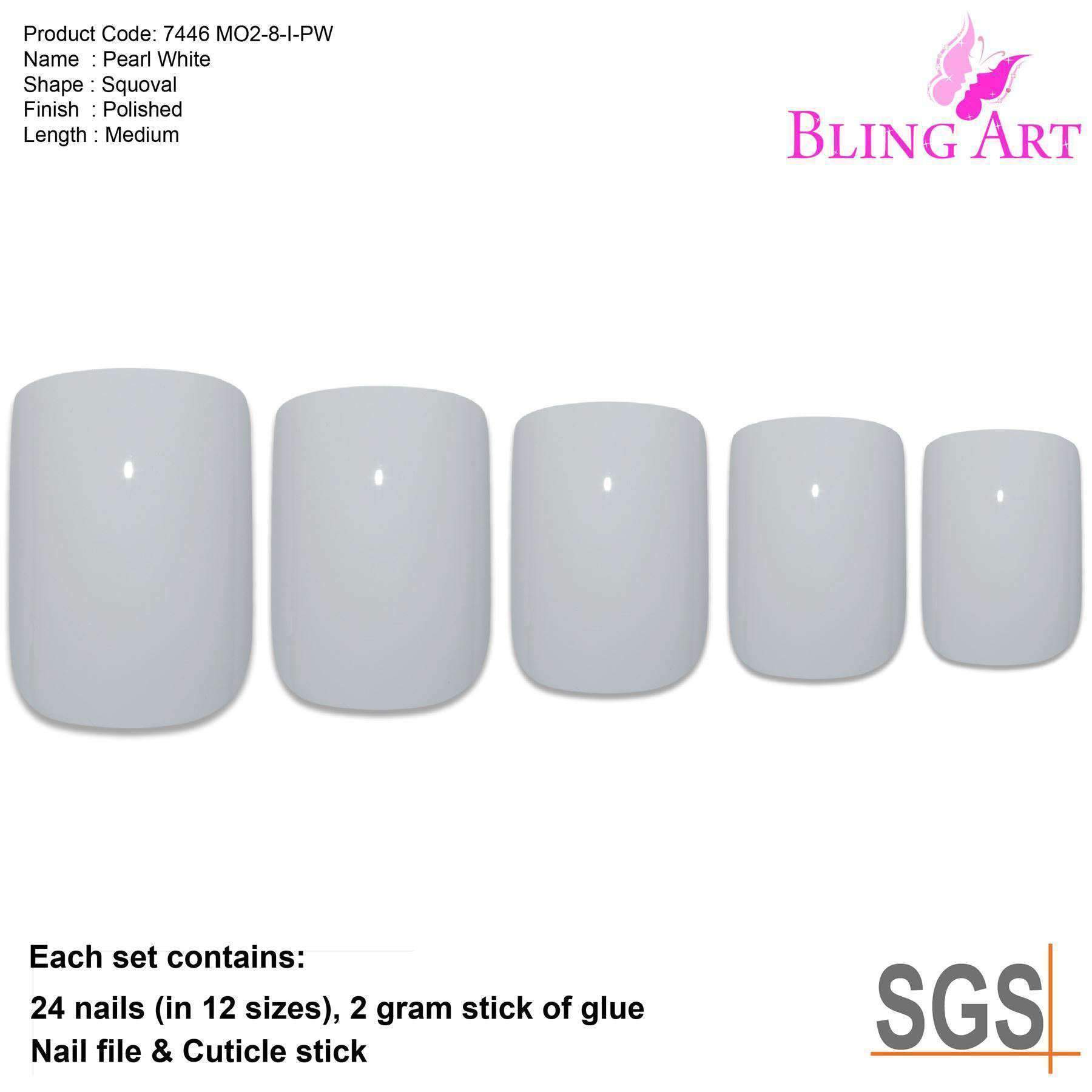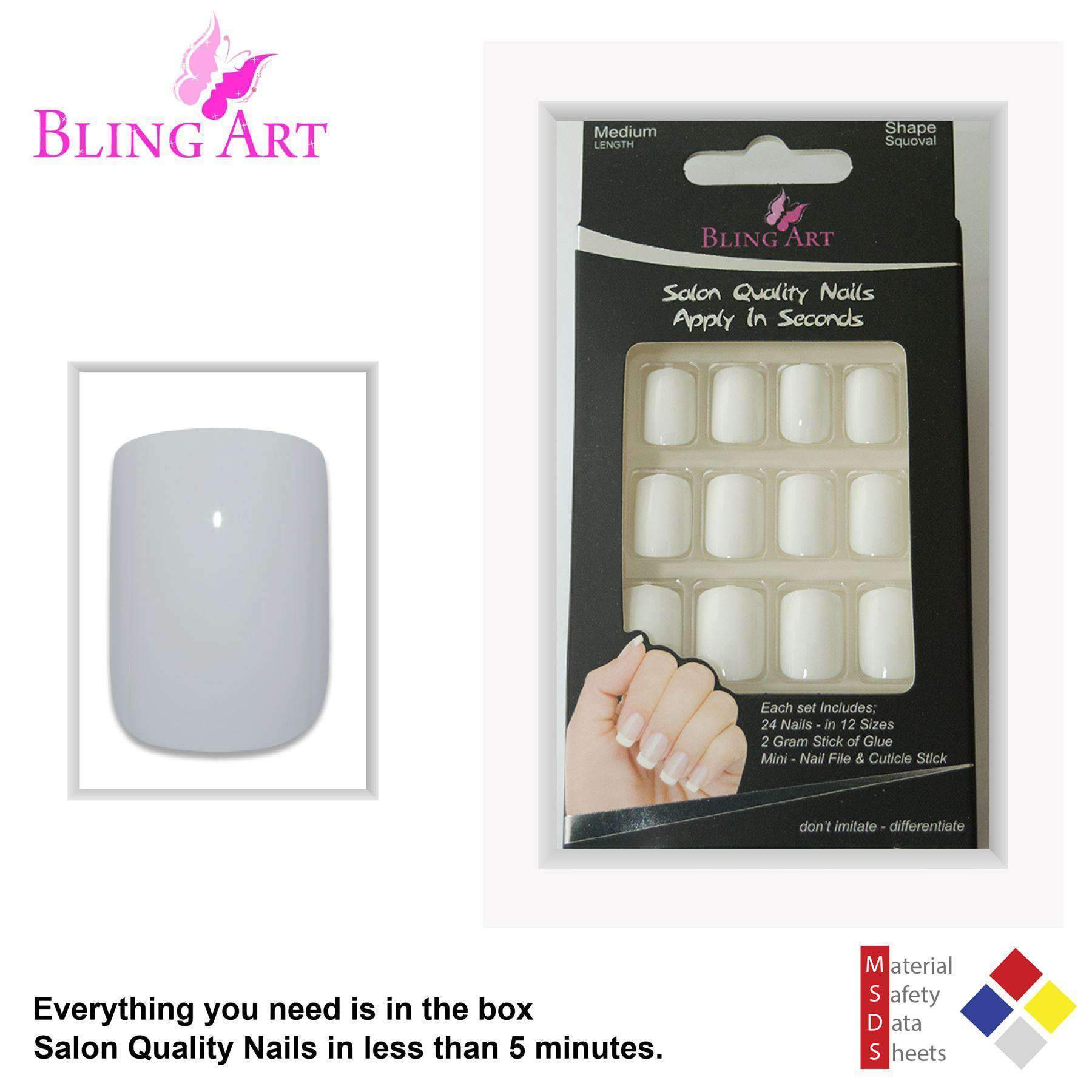False Nails Bling Art White Polished French Squoval 24 Fake Medium