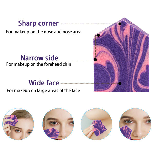 - - Wedge shape is perfect for applications and touch-ups around the eyes and nose and all makeup types.
