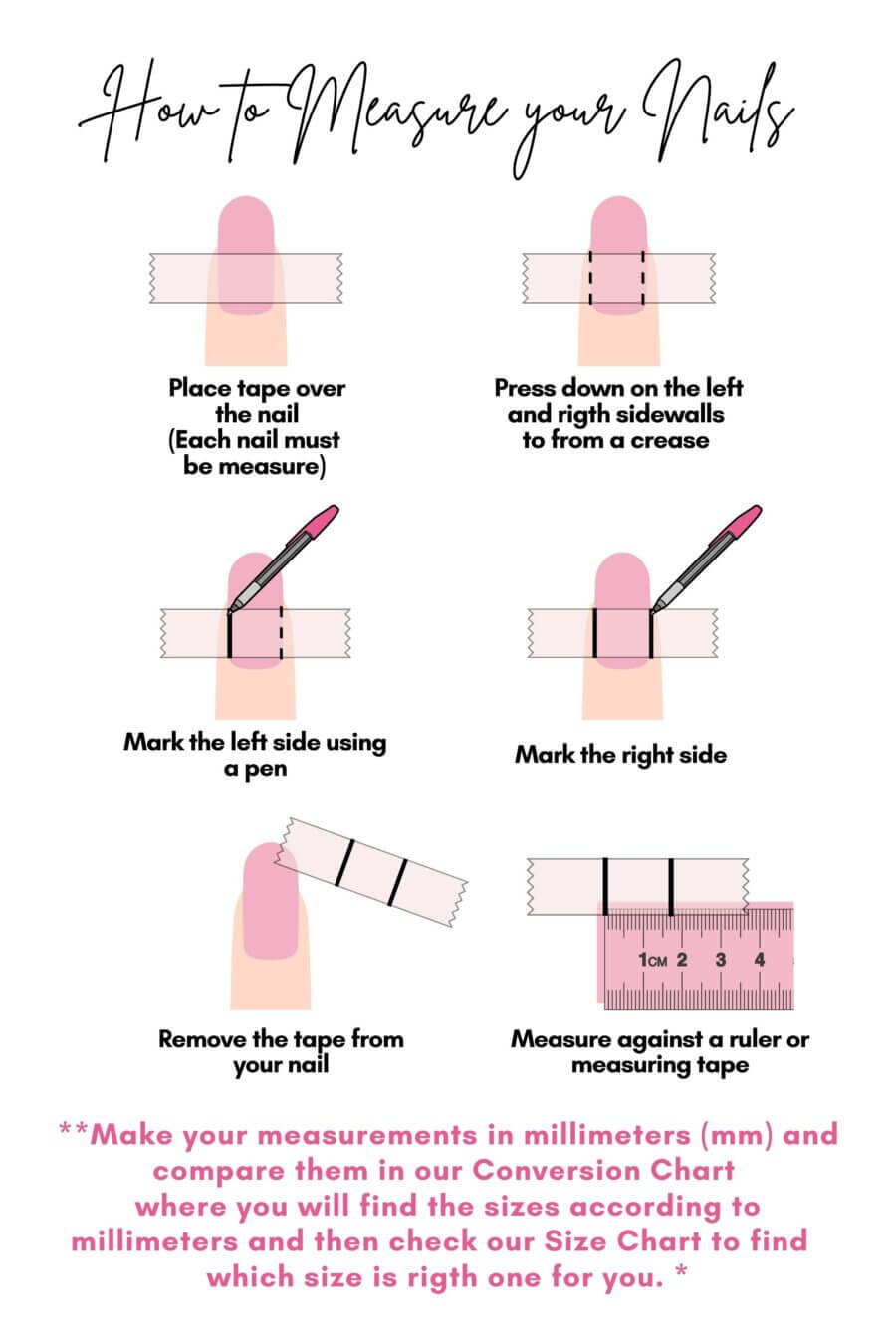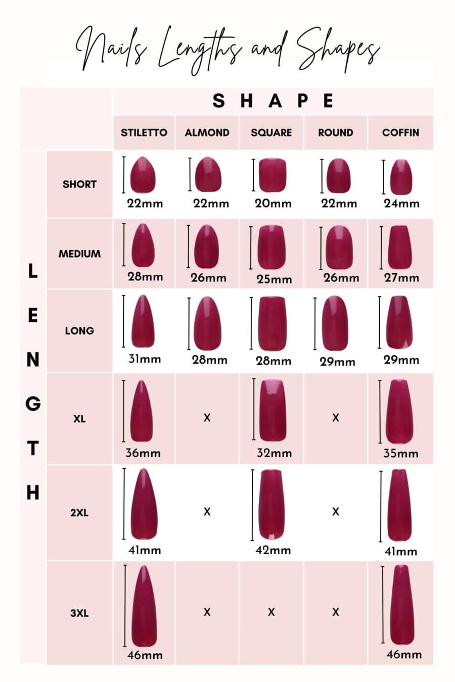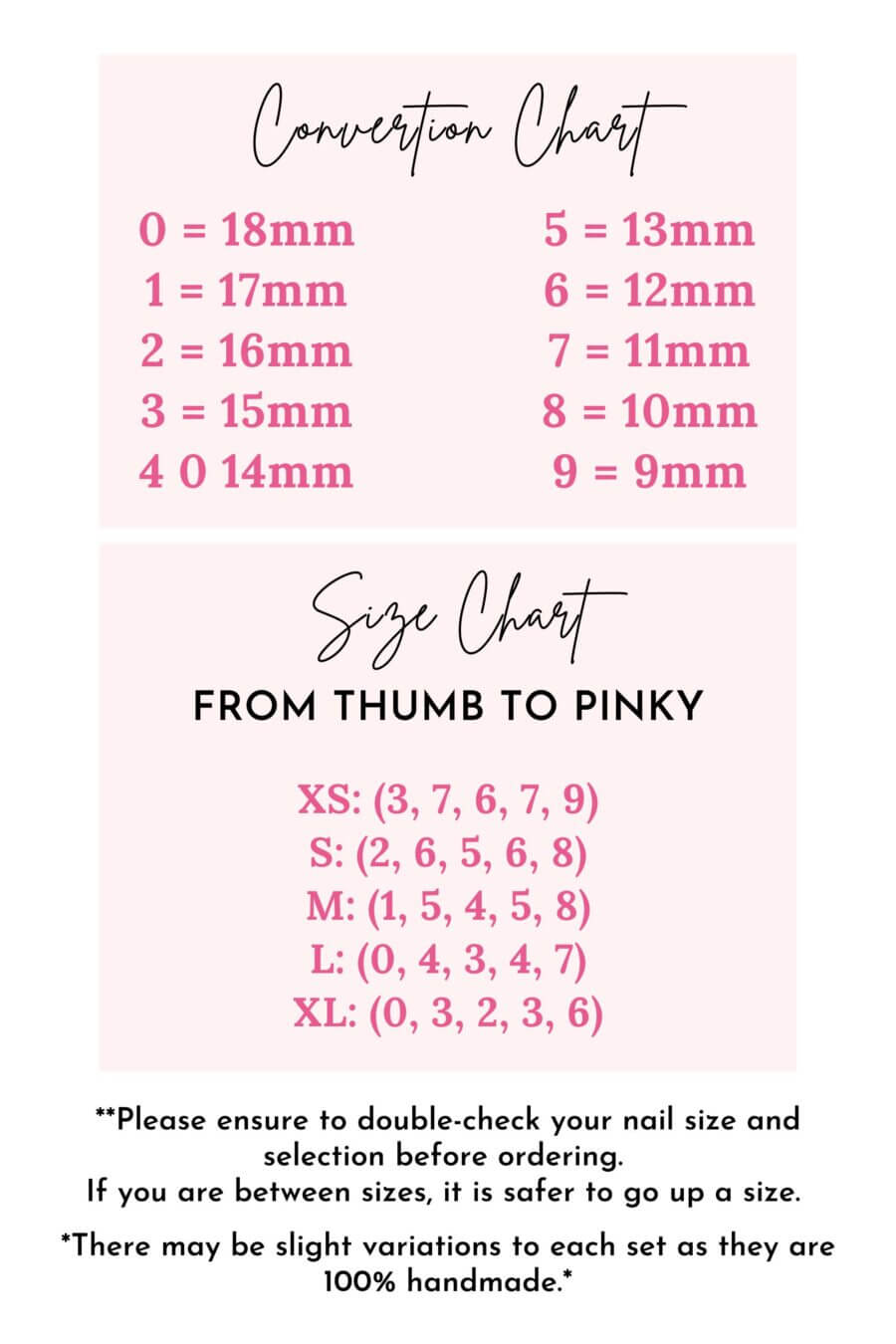 *Please ensure to double-check your nails size and selection before ordering. If you are between sizes, it is safer to go up a size.