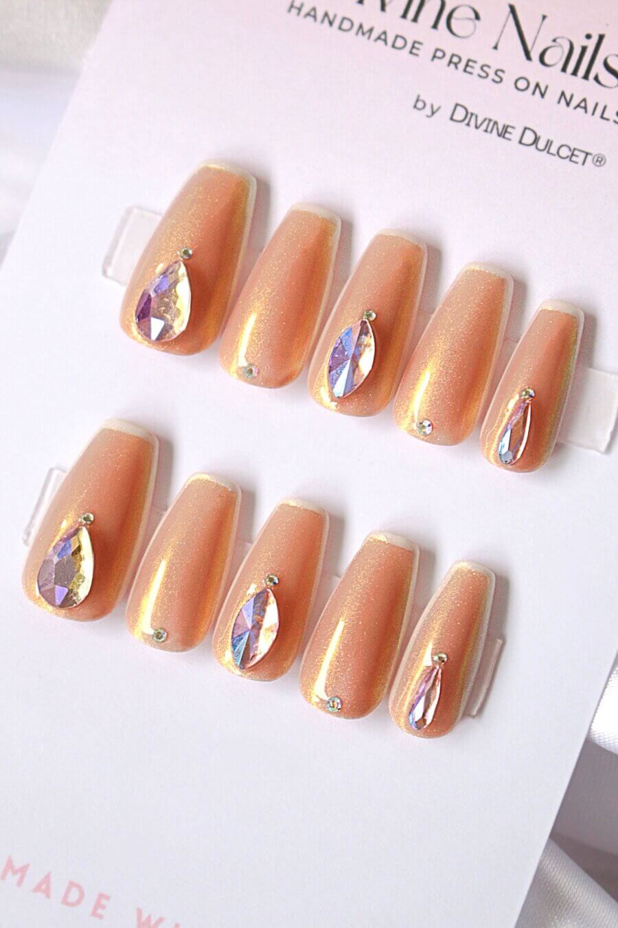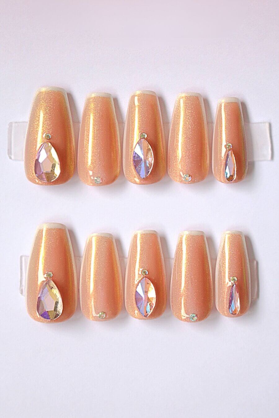 Rose Champagne Swarovski Crystals Press On Nails Set